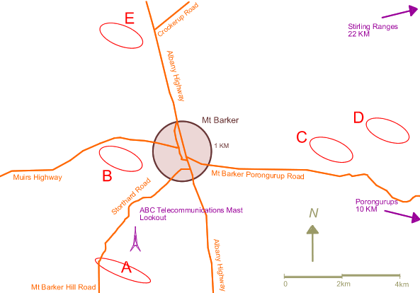There is a lookout at the top of Mt Barker hill overlooking the town. To the north east there are the Stirling Ranges, 30km away while the Porongurups are 20km to the east. These different issues need consideration together.